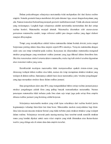 Dalam perkembangan selanjutnya matematika telah melepaskan diri dari ikatan realitas