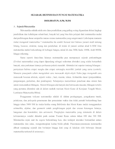 SEJARAH, DEFINISI DAN FUNGSI MATEMATIKA