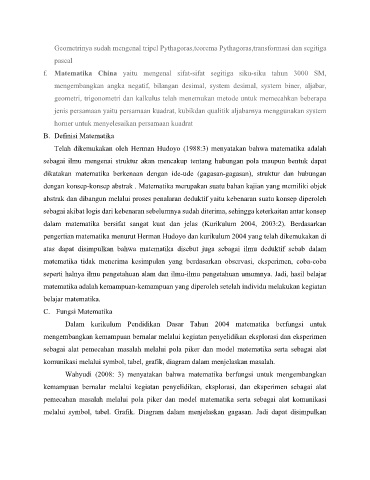 f. Matematika China yaitu mengenal sifat-sifat segitiga siku-siku tahun 3000 SM,