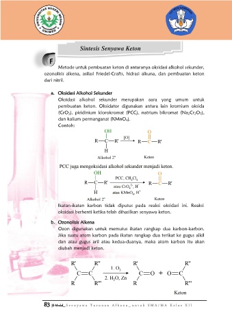 ozonolisis alkena, asilasi Friedel-Crafts, hidrasi alkuna, dan pembuatan keton