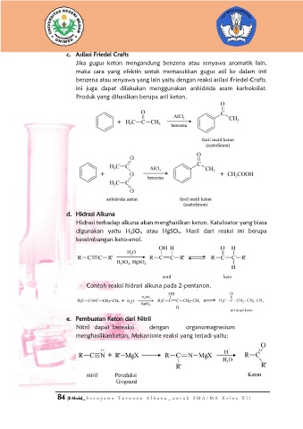 benzena atau senyawa yang lain yaitu dengan reaksi asilasi Friedel-Crafts.