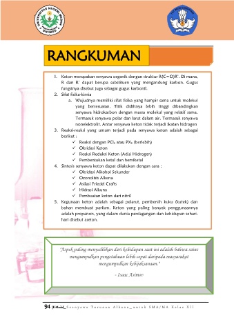 1. Keton merupakan senyawa organik dengan struktur R(C=O)R’. Di mana,