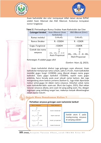 Tabel 5.1 Perbandingan Rumus Struktur Asam Karboksilat dan Ester