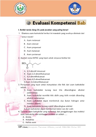 1. Diantara asam karboksilat berikut ini manakah yang awalnya disintesis dari