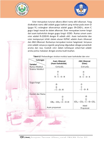 Tabel 6.1 Perbandingan struktur molekul asam karboksilat dan ester