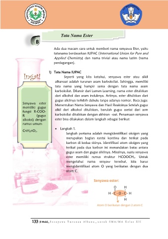 Ingat! Seperti yang kita ketahui, senyawa ester atau alkil