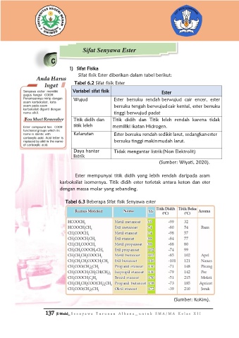 Sifat fisik Ester diberikan dalam tabel berikut: