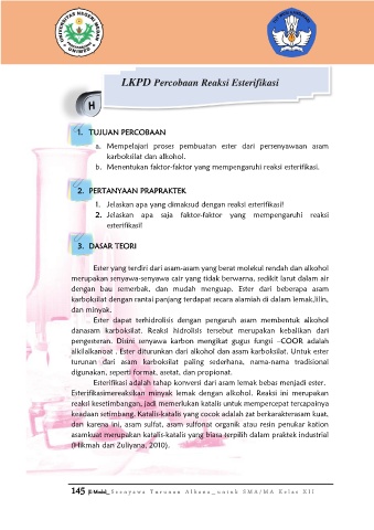 a. Mempelajari proses pembuatan ester dari persenyawaan asam
