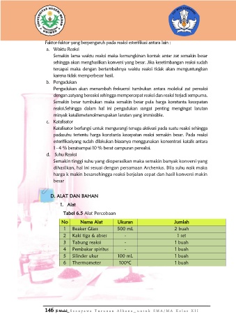 Faktor-faktor yang berpengaruh pada reaksi esterifikasi antara lain :