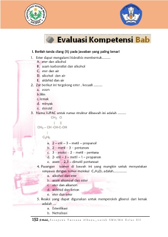1. Ester dapat mengalami hidrolisis membentuk.........