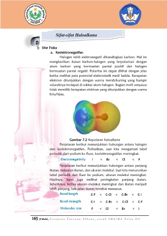 ketika melihat peta potensial elektrostatik metil halida. Kerapatan