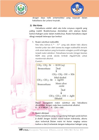 karbon-halogen polar dalam molekulnya. Reaksi haloalkana dapat