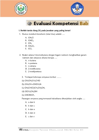 1. Rumus molekul kloroform (obat bius) adalah ….