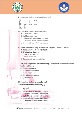 8. Pernyataan berikut yang termasuk sifat senyawa haloalkana adalah ….