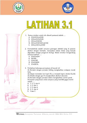1. Rumus struktur untuk 4,4–dimetil pentanal adalah ....