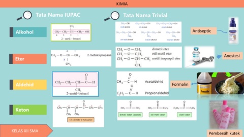 KIMIA Tata Nama IUPAC Tata Nama Trivial Alkohol Antiseptic Anestesi Eter Aldehid Formalin Keton KELAS XII SMA Pembersih kutek