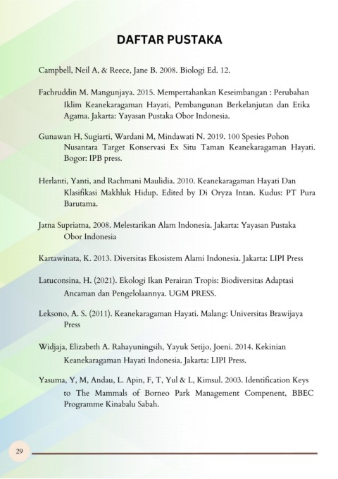 Kartawinata, K. 2013. Diversitas Ekosistem Alami Indonesia. Jakarta: LIPI Press