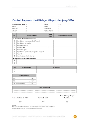 Contoh Laporan Hasil Belajar (Rapor) Jenjang SMA