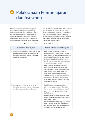 Tabel 4.1. Karakteristik Pembelajaran dan Contoh Pelaksanaannya