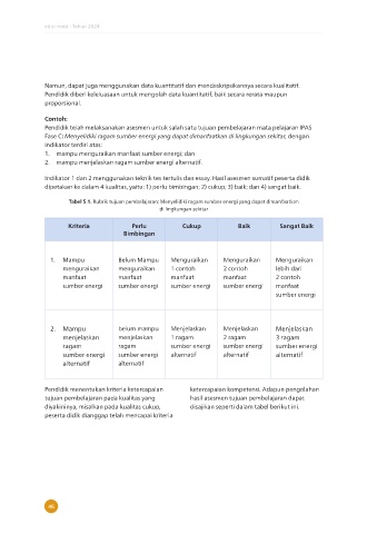 Tabel 5.1. Rubrik tujuan pembelajaran: Menyelidiki ragam sumber energi yang dapat dimanfaatkan