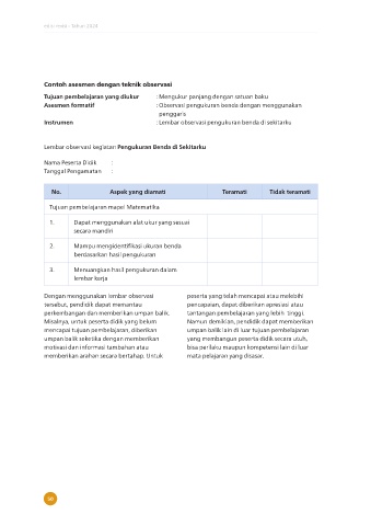Asesmen formatif : Observasi pengukuran benda dengan menggunakan