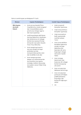 Berikut contoh tujuan pembelajaran TK Kasih: