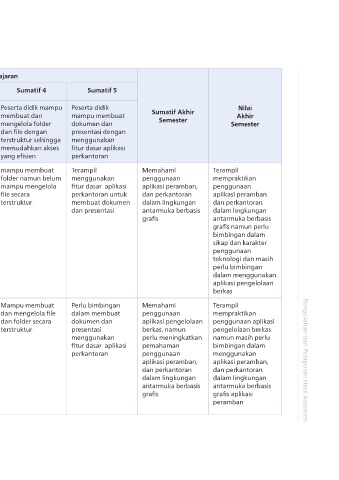 Sumatif 5 Peserta didik mampu membuat dokumen dan presentasi dengan menggunakan fitur dasar aplikasi perkantoran Terampil menggunakan fitur dasar aplikasi perkantoran untuk membuat dokumen dan presentasi Perlu bimbingan dalam membuat dokumen dan presentasi menggunakan fitur dasar aplikasi perkantoran