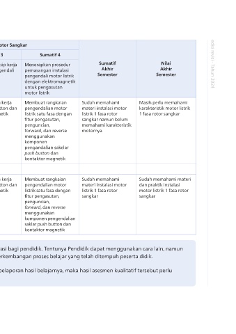 Memahami prinsip kerja  komponen pengendali   motor listrik  Memahami cara kerja  sakelar push button dan   kontaktor magnetik     Memahami cara kerja  sakelar push button dan   kontaktor magnetik  tetap menjaga validitas dan akurasi penilaian, yang menggambarkan perkembangan proses belajar yang telah ditempuh peserta didik.