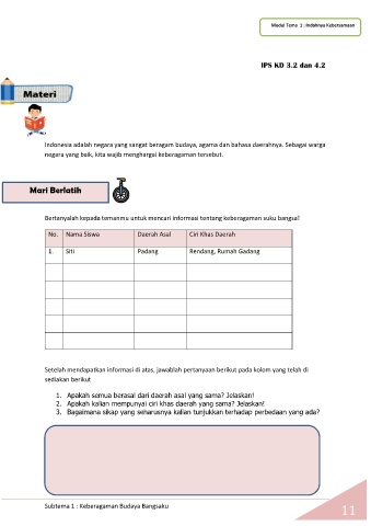 Bertanyalah kepada temanmu untuk mencari informasi tentang keberagaman suku bangsa!