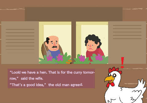 “Look! we have a hen. That is for the curry tomor- row,” said the wife. “That’s a good idea,” the old man agreed.