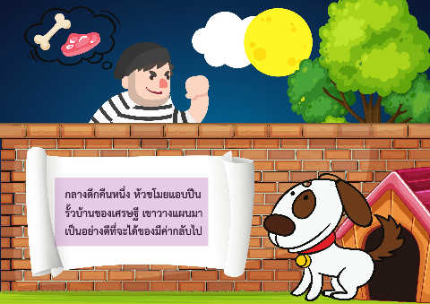 กลางดึกคืนหนึ่ง หัวขโมยแอบปีน รั้วบ้านของเศรษฐี เขาวางแผนมา เป็นอย่างดีที่จะได้ของมีค่ากลับไป