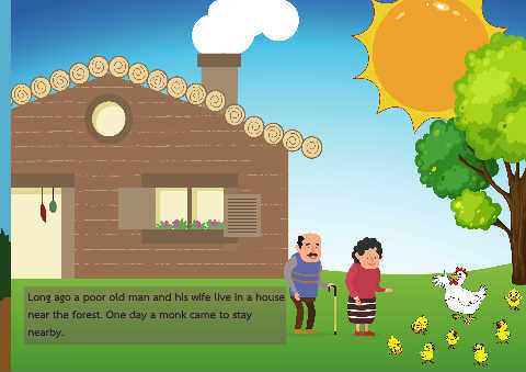Long ago a poor old man and his wife live in a house near the forest. One day a monk came to stay nearby.