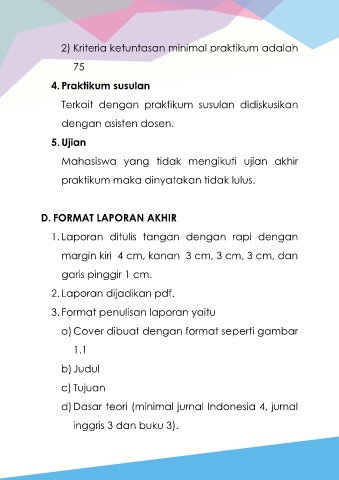 2) Kriteria ketuntasan minimal praktikum adalah