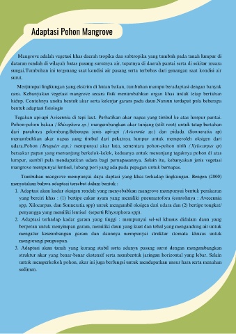 Tumbuhan mangrove mempunyai daya daptasi yang khas terhadap lingkungan. Bengen (2000)