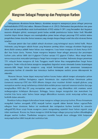 dari luas hutan dunia. Namun, hutan mangrove berperan besar sebagai penyerap dan penyimpan