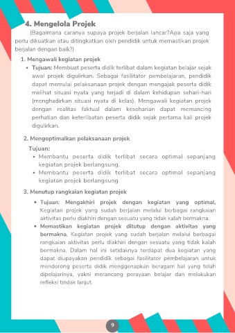 awal projek digulirkan. Sebagai fasilitator pembelajaran, pendidik