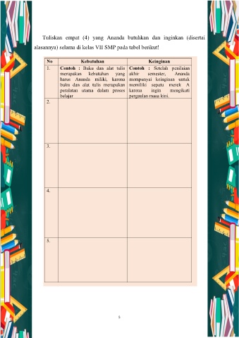 Tuliskan empat (4) yang Ananda butuhkan dan inginkan (disertai
