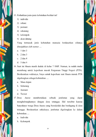 15. Perhatikan jenis-jenis kebutuhan berikut ini!