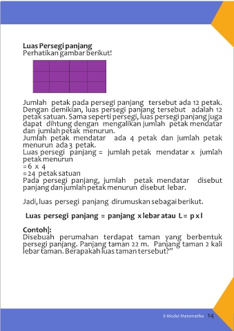 petak satuan. Sama seperti persegi, luas persegi panjang juga