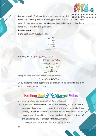 berakomodasi. Panjang teropong tersebut adalah 20,5 cm. Jika