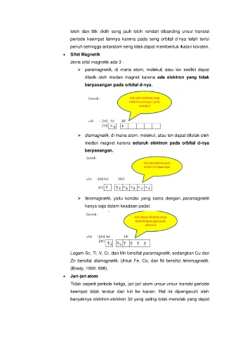 Logam Sc, Ti, V, Cr, dan Mn bersifat paramagnetik, sedangkan Cu dan