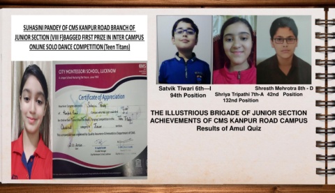 Satvik Tiwari 6th—I Shresth Mehrotra 8th - D 94th Position Shriya Tripathi 7th-A 42nd Position 132nd Position THE ILLUSTRIOUS BRIGADE OF JUNIOR SECTION ACHIEVEMENTS OF CMS KANPUR ROAD CAMPUS Results of Amul Quiz