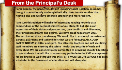 for guiding us so well through this crisis. CITY MONTESSORI SCHOOL has been