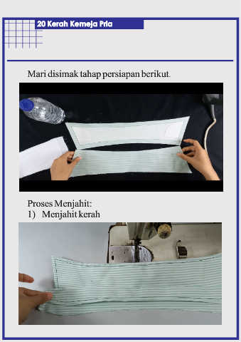 Tenunan Tekstil 20 v Kerah Kemeja Pria Mari disimak tahap persiapan berikut. Proses Menjahit: 1) Menjahit kerah