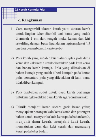 dan bahan kerah kemeja. Pola yang diletakkan di