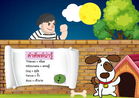 คำาศัพท์น่ารู้ Thieves = ขโมย Millionaire = เศรษฐี Dog = สุนัข Fence = รั้ว ฺBoss = เจ้านาย