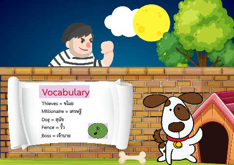 Vocabulary Thieves = ขโมย Millionaire = เศรษฐี Dog = สุนัข Fence = รั้ว ฺBoss = เจ้านาย