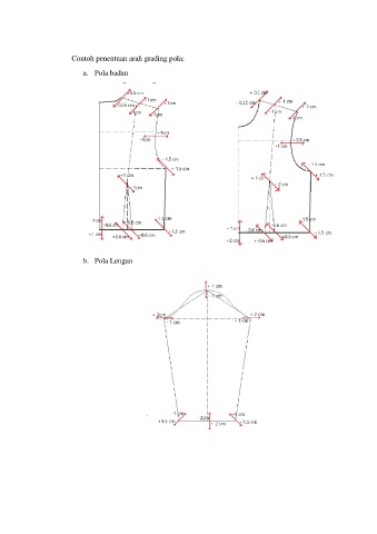 Contoh penentuan arah grading pola: a. Pola badan b. Pola Lengan