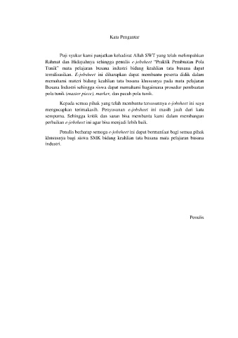 Rahmat dan Hidayahnya sehingga penulis e-jobsheet “Praktik Pembuatan Pola