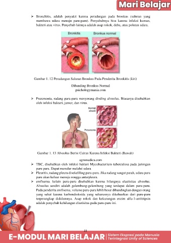 Gambar 1. 12 Peradangan Saluran Bronkus Pada Penderita Bronkitis (kiri)